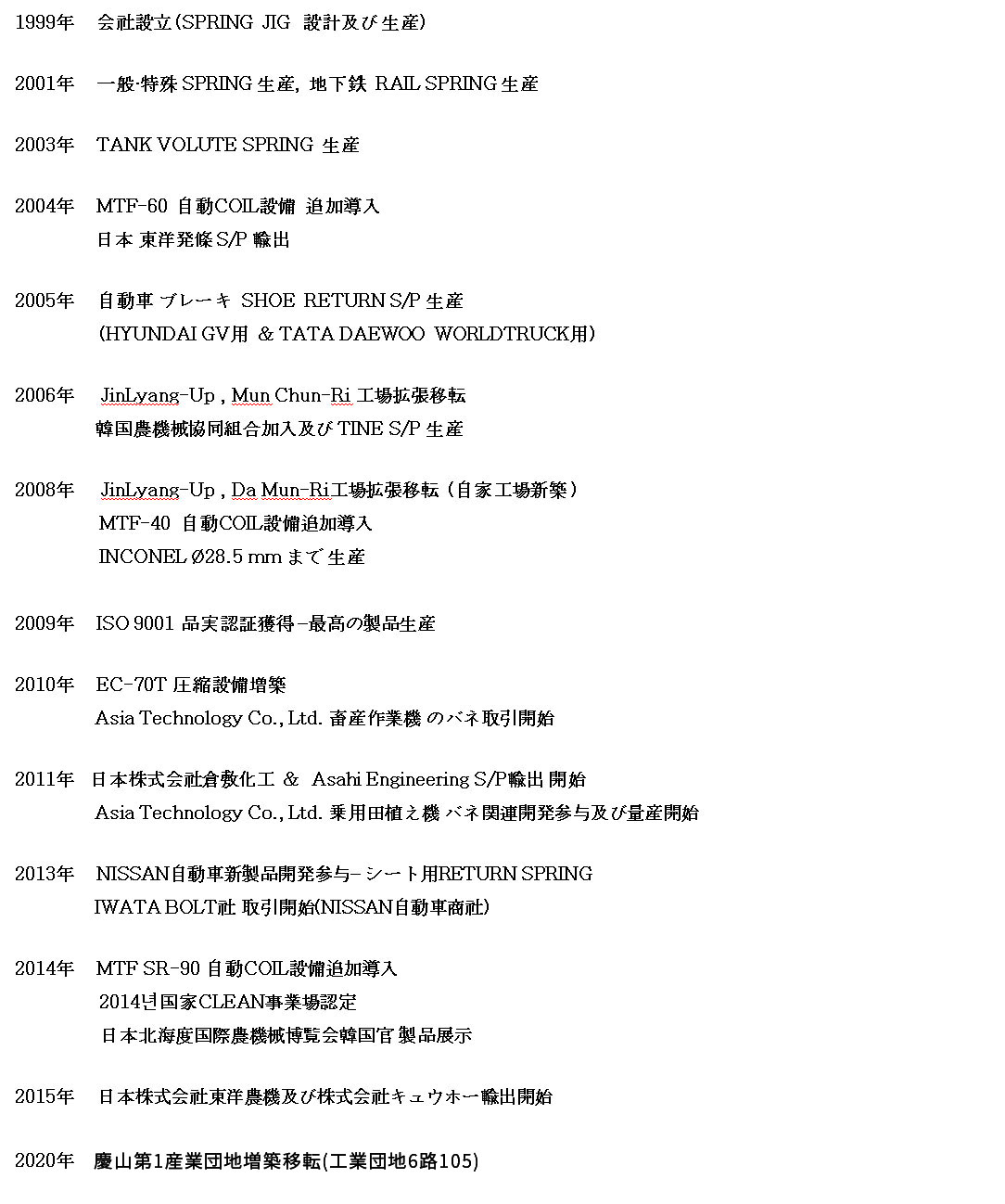 - JinLyang-Up , Mun Chun-Ri 工場擴張移轉